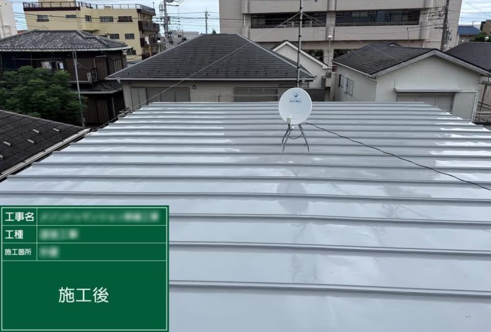 シーリング工事では廊下部分の目地を打ち替え、防水工事では陸屋根にウレタン塗膜防水を密着工法で施工し、雨水の浸入を防ぐ強靭な防水層を形成しました。