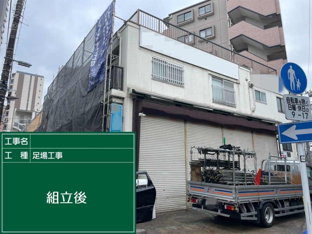 【企業様】東京都足立区 外壁修繕工事 2022/03/08 目次1 仮設足場工事2 下地補修工事3 シーリング工事4 洗浄工事5 塗装工事6 防水工事 仮設足場工事 下地補修工事 シーリング工事 洗浄工事 塗装工事 防水工事
